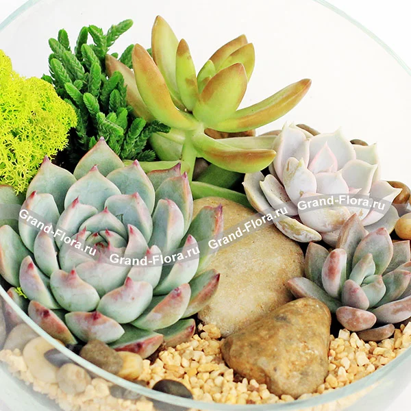 Стандартный: флорариум, эхеверия, молодило, седум.