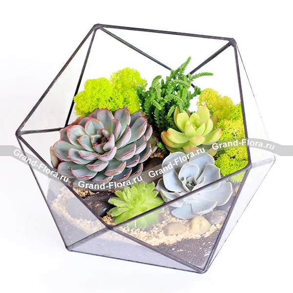 Уточняйте наличие флорариума у операторов. Данный вид товара необходимо оформлять за 2 дня. Доставка осуществляется только по Москве и Московской области. Стоимость доставки по МО уточняйте у операторов.