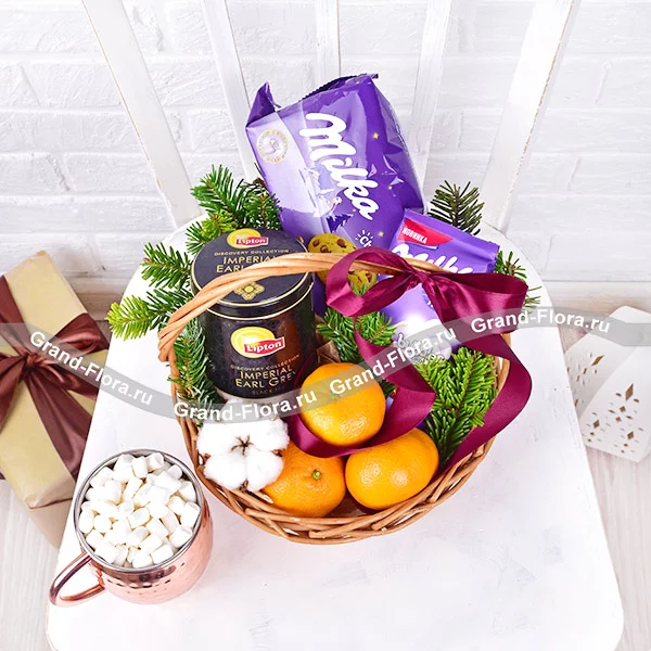 Зимушка зима - корзина с чаем и шоколадом Милка